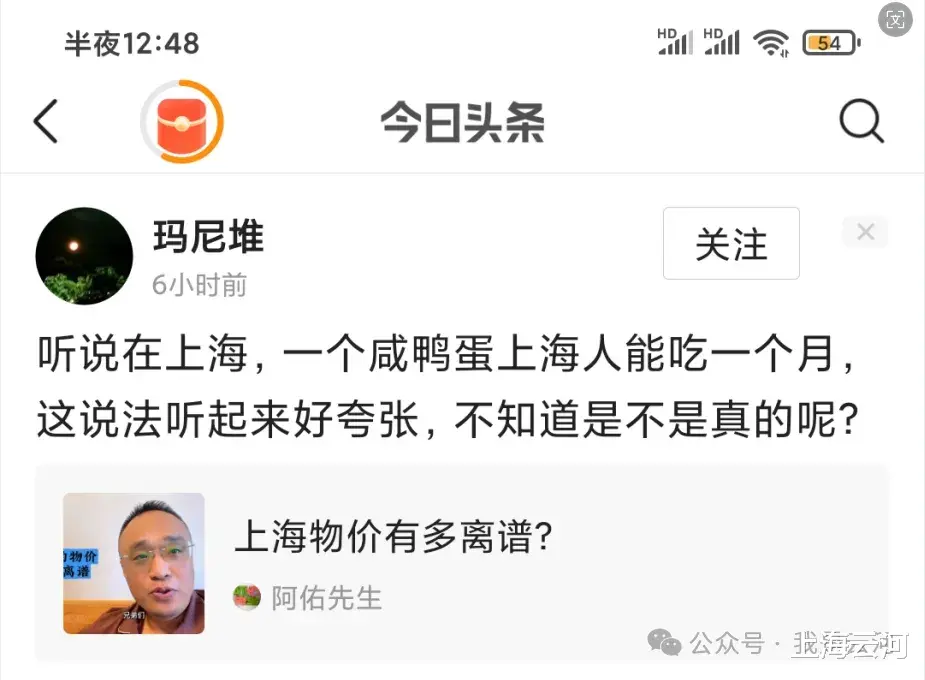 他听说一个咸鸭蛋上海人能吃一个月,这对于生活富裕的云南老乡来说让他觉得好夸张,因为他们那里生活富裕,不会一个咸鸭蛋吃上一个月的啊,只有贫穷的上海人才会这样,不过呢。他也觉得这样太夸张了,所以他也很好奇,所以他发帖问不知道是不是真的呢?因为他不知道这样的听说来的事情是真是假,他很想知道答案。