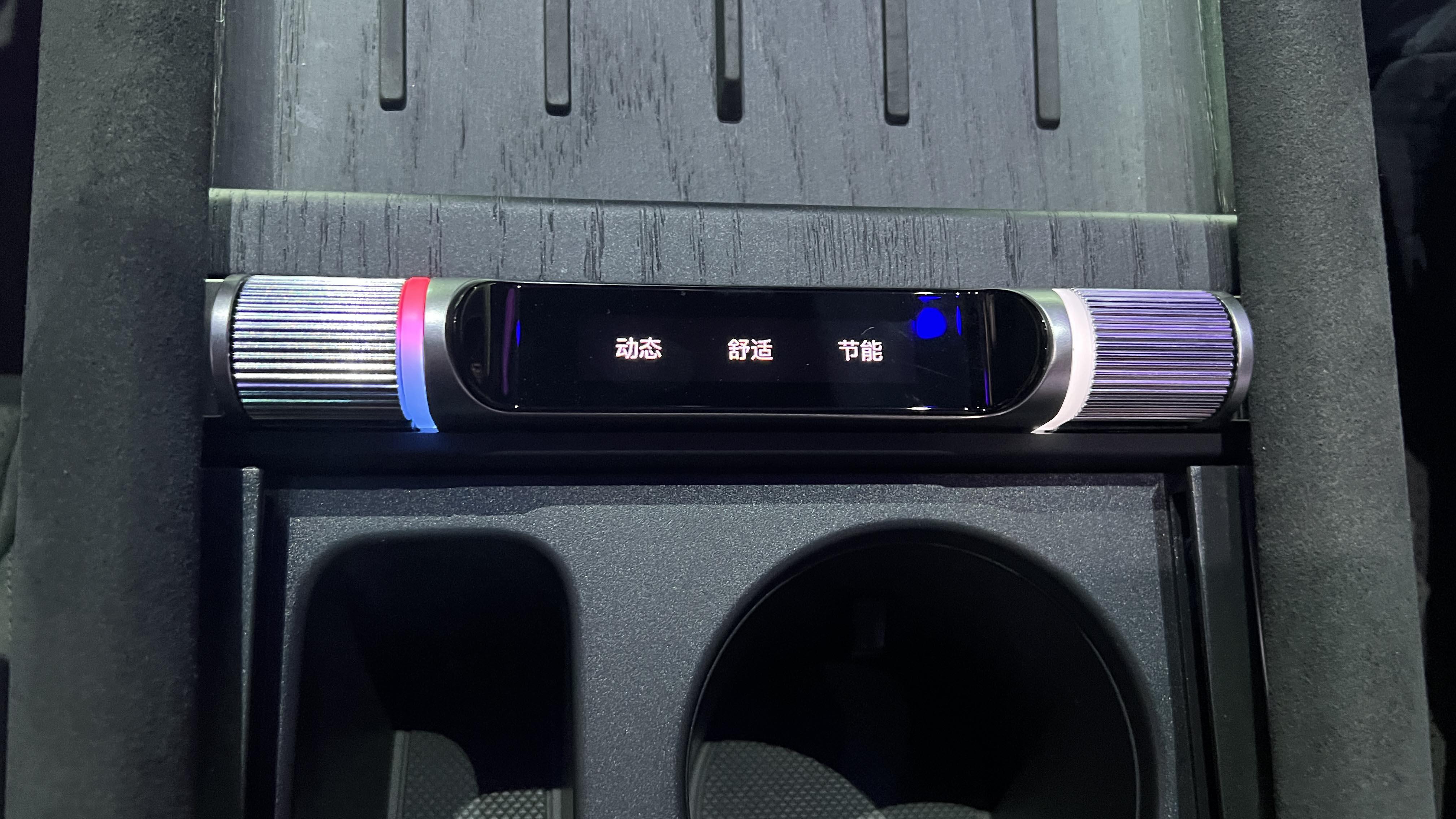 还有一点比较有意思的地方,就是岛台附近加入了一组控制器,它由两个滚轮实体键和一条触控bar功能键组成,官方称之为智慧岛系统。该系统支持50多种可定制的快捷方式,比如接听电话、导航回家、切换歌单、调空调、调音量等等。