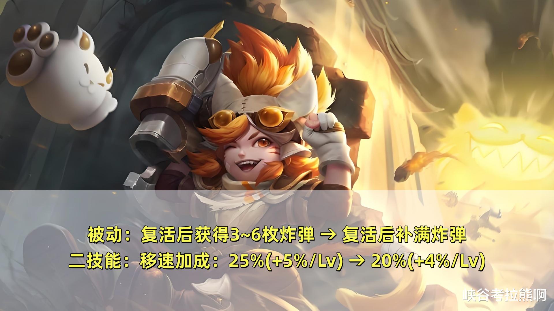 虽然复活后改为补满炸弹,但也仅限于守家状态下效果略微明显,而常态情况下就属于纯削弱,毕竟前期移速削了5%,后期削了10%,支援和逃生能力是实打实的削了。