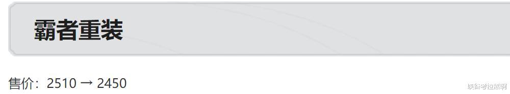 本赛季霸者重装遭遇削弱后性价比大跌,这波降低售价的调整虽说是加强,但治标不治本。