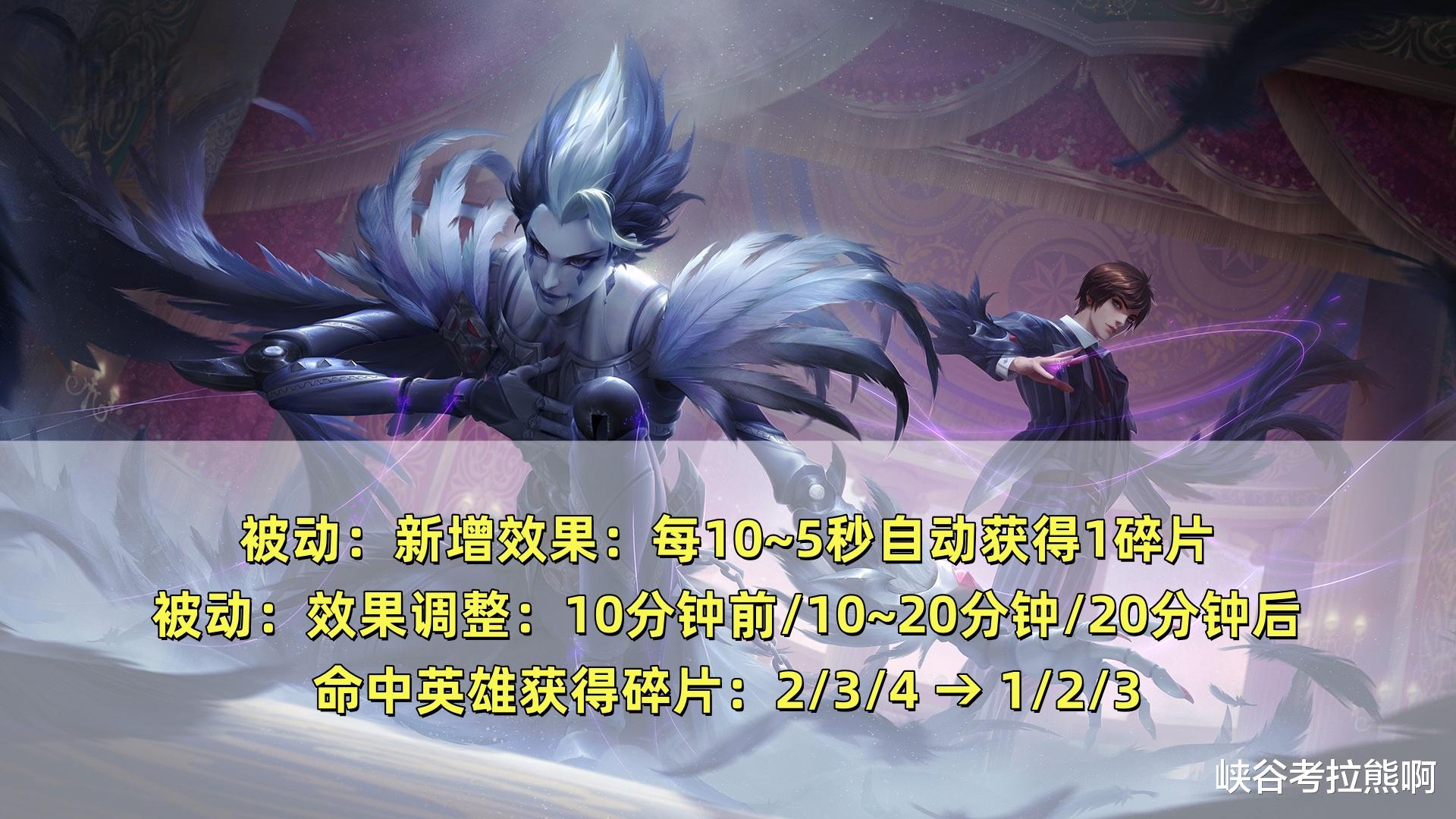 元歌(削弱):被动新增了每10~5秒自动获取1个英雄碎片的效果,代价是全时期获取英雄碎片的数量降低1个。