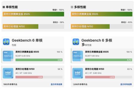 而且DXP4800 Plus处理器也升级到了12代Intel奔腾金牌8505,5核心6线程,拥有一颗性能大核,所以CPU无论是单核性能还是多核性能,对比目前主流的N100、N150都是大提升,GPU也有48个执行单元,对比N100/150的24个也提升很多。