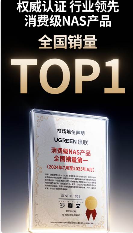 首先是绿联在年中打出了一张超级皇牌——绿联DH4300 Plus,凭借极其高的产品力收获了很多用户,并在618和双十一两次大促登顶NAS销量榜,还拿下来了专业市场调研机构沙利文认证的「消费级NAS产品全国销量第一」的成绩。