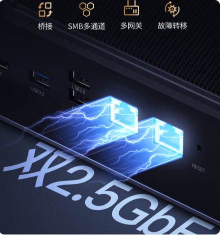其他配置和DXP2800是一致的,但增加了SD3.0卡槽,以及提供了双2.5G网口,支持桥接、链路聚合、SMB多通道等多种玩法,最高可以有5Gbps的传输速度,而且两个网口也更加方便你用虚拟机多开软路由或者其他多系统玩法。