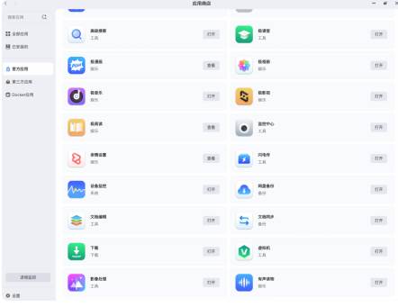 如果你还有其他的使用场景,也可以通过应用中心自由安装适合自己的功能,上面提供了很多官方应用,以及封装好的容器应用,没有自己想要的还可以用docker自己部署。