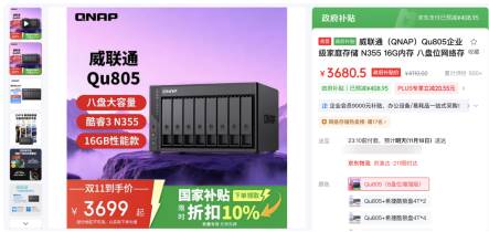 当然,如果你还可以增加预算,来到4000元档+四盘位+超专业折腾用途,那么老牌厂商威联通新品qu405也可以考虑下,N355处理器+双2.5网口+16GB DDR5可升级内存+双M.2盘位,妥妥目前的主流旗舰水平了。