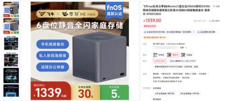 其次深受各大折腾佬追捧的飞牛,也在今年前些日子上线了首款硬件联盟NAS产品——零刻Me mini飞牛定制版,不过这款产品全闪设计+2.5G网口的组合,让它的口碑非常两极分化,不过千元出头的售价也让它收获了一批需求清晰的用户。