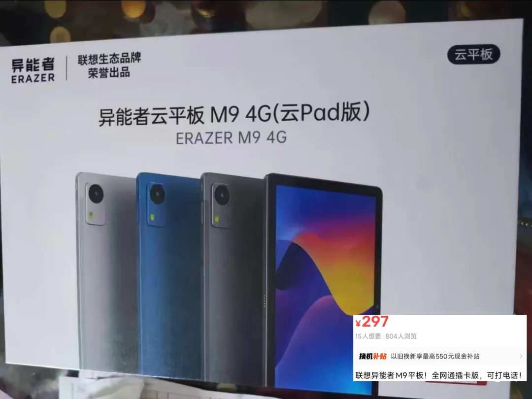 第三款是联想异能者M9 Pad,它采用了10.1英寸的IPS屏幕,分辨率只有1280x800,峰值亮度为280nit。性能上,采用了紫光展锐T616八核处理器,相当于骁龙710的水平,自带大腔体的双扬声器和6000mAh大电池,追剧外放都没问题。它还预装安卓13系统,支持4G全网通插卡,可以打电话和数据上网,目前4G+64G版本的二手均价是290元左右。