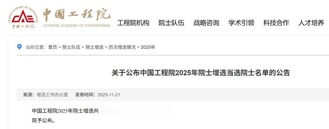 中国科学院、中国工程院11月21日公布2025年院士增选结果,分别选举产生中国科学院院士73人,中国工程院院士71人。