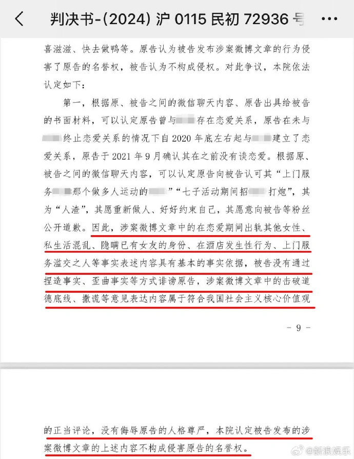 1. 核心爆料被认定 “有事实依据”法院经审理查明,郝女士爆料的 “丁泽仁恋爱期间出轨其他女性、私生活混乱、隐瞒已有女友身份、在酒店发生性行为” 等内容,并非空穴来风——有双方微信聊天记录、丁泽仁本人自认 “人渣” 的书面材料等直接证据佐证,因此不构成诽谤。这意味着,丁泽仁的 “私德问题” 被司法层面间接实锤。