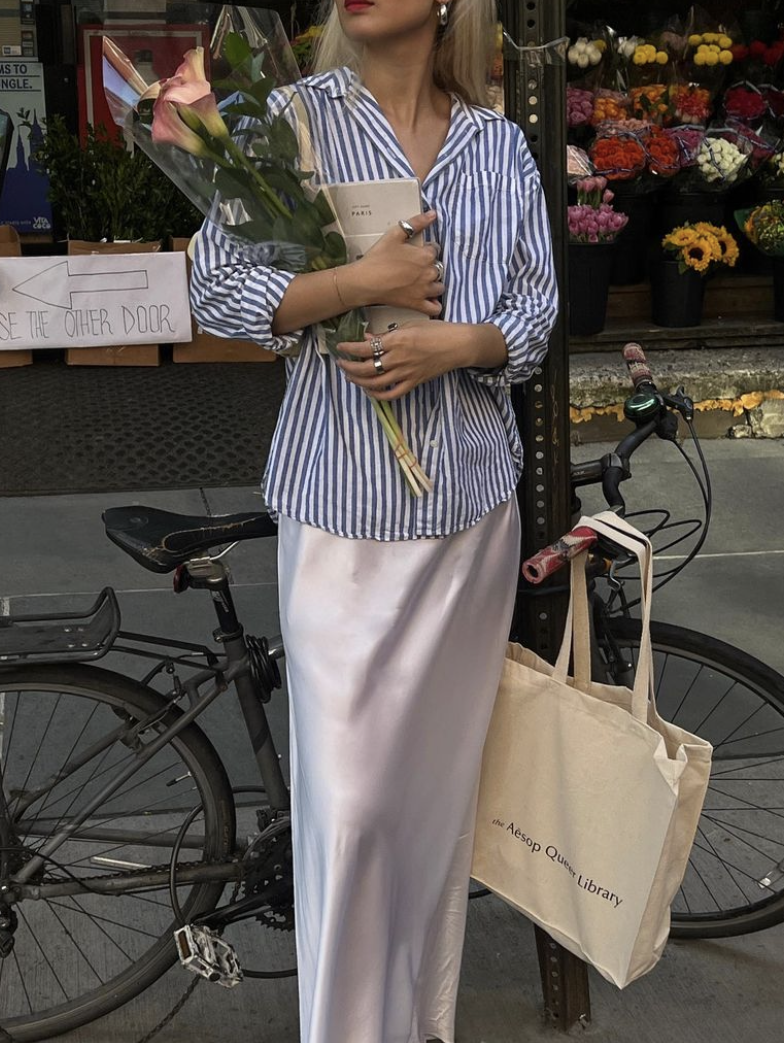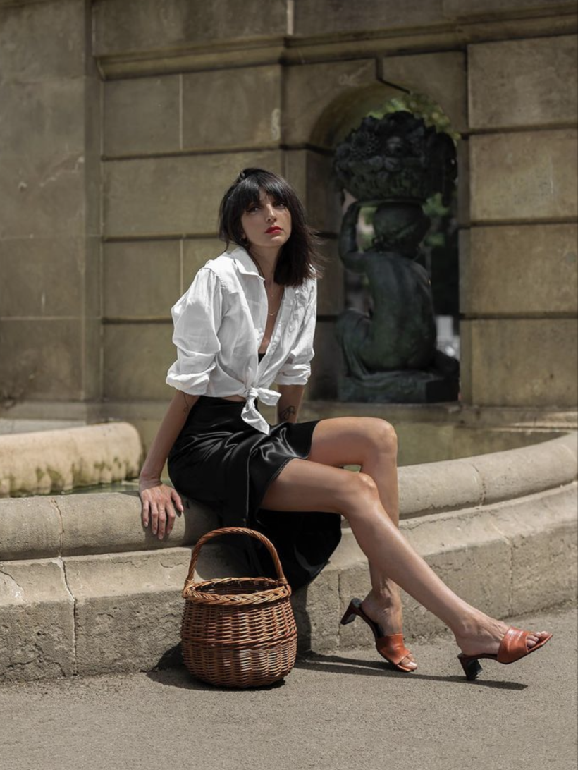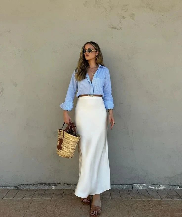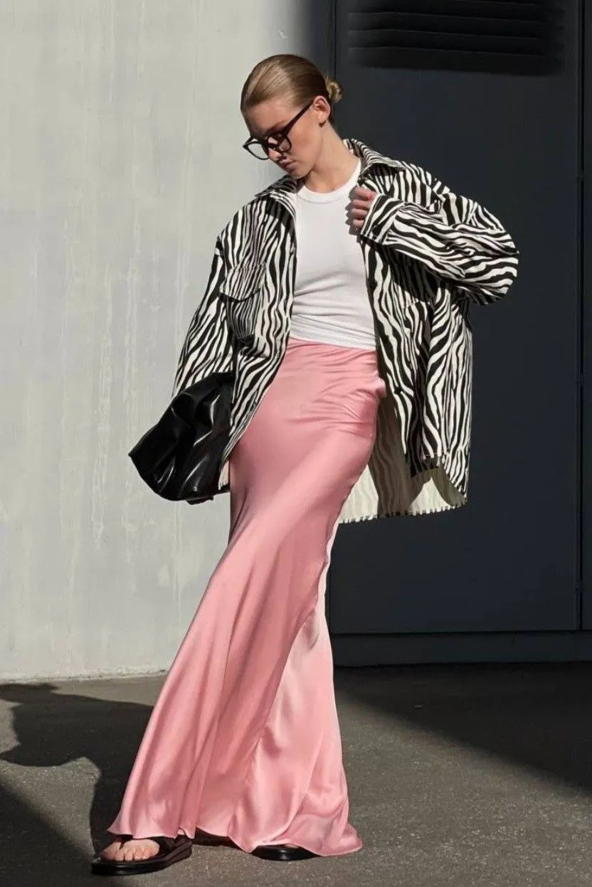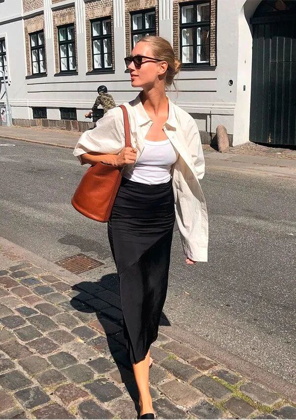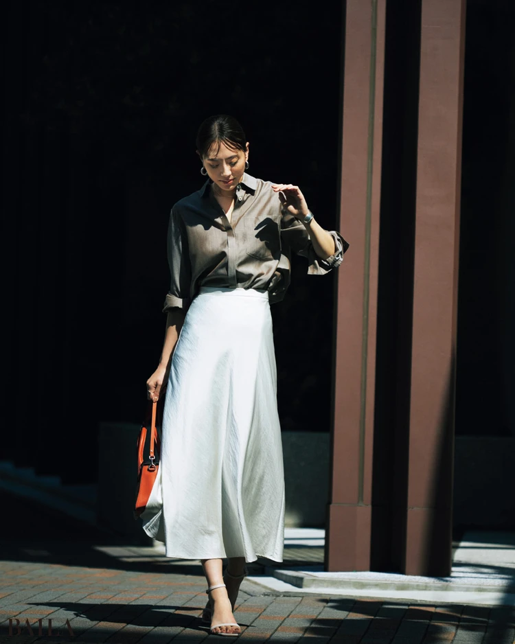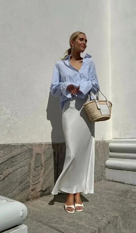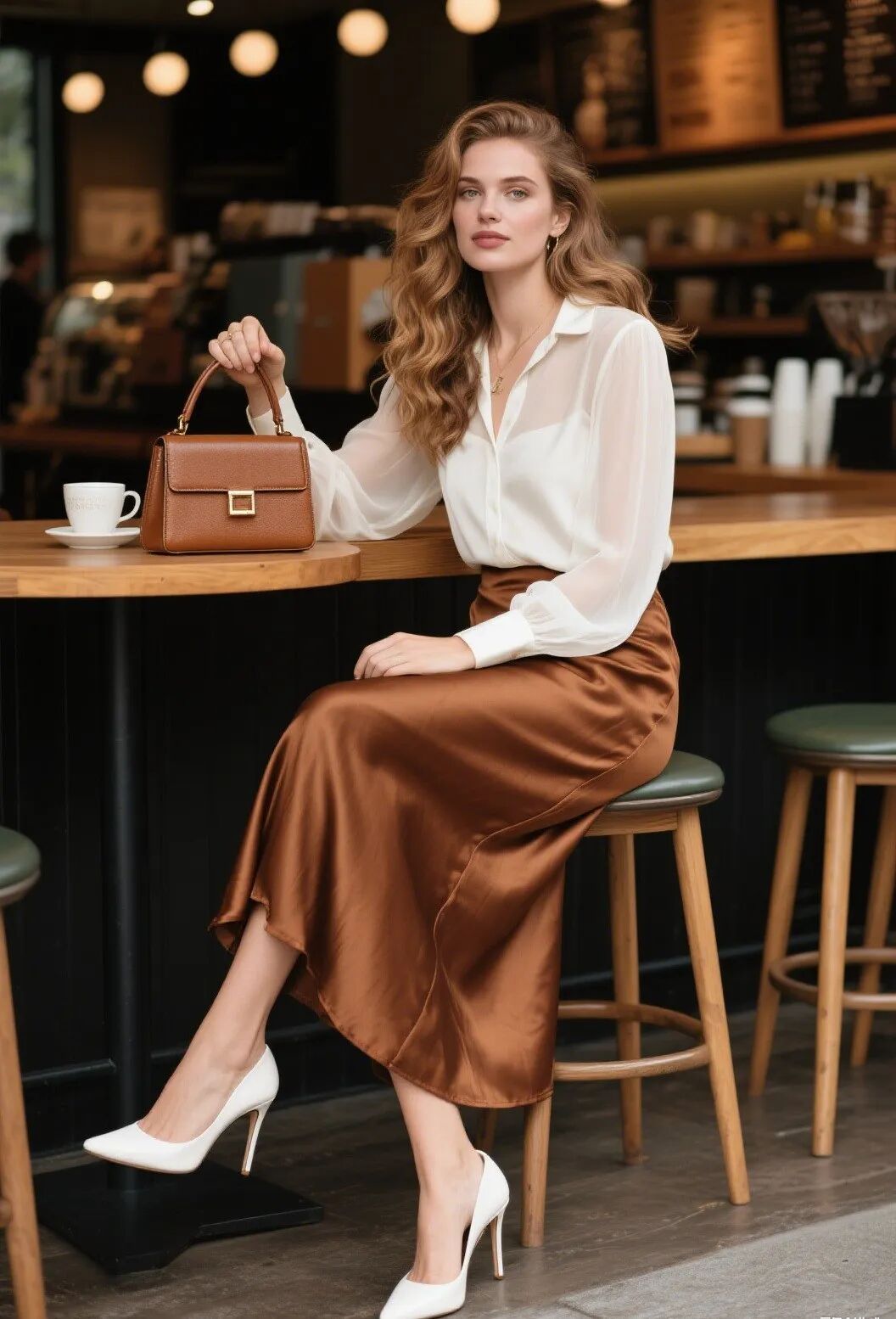 “衬衫 + 缎面直筒裙” 都能轻松 hold 住,