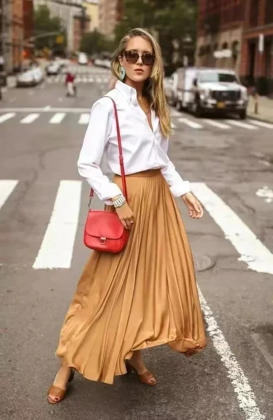 那 “衬衫 + 缎面百褶裙”一定是优选。
