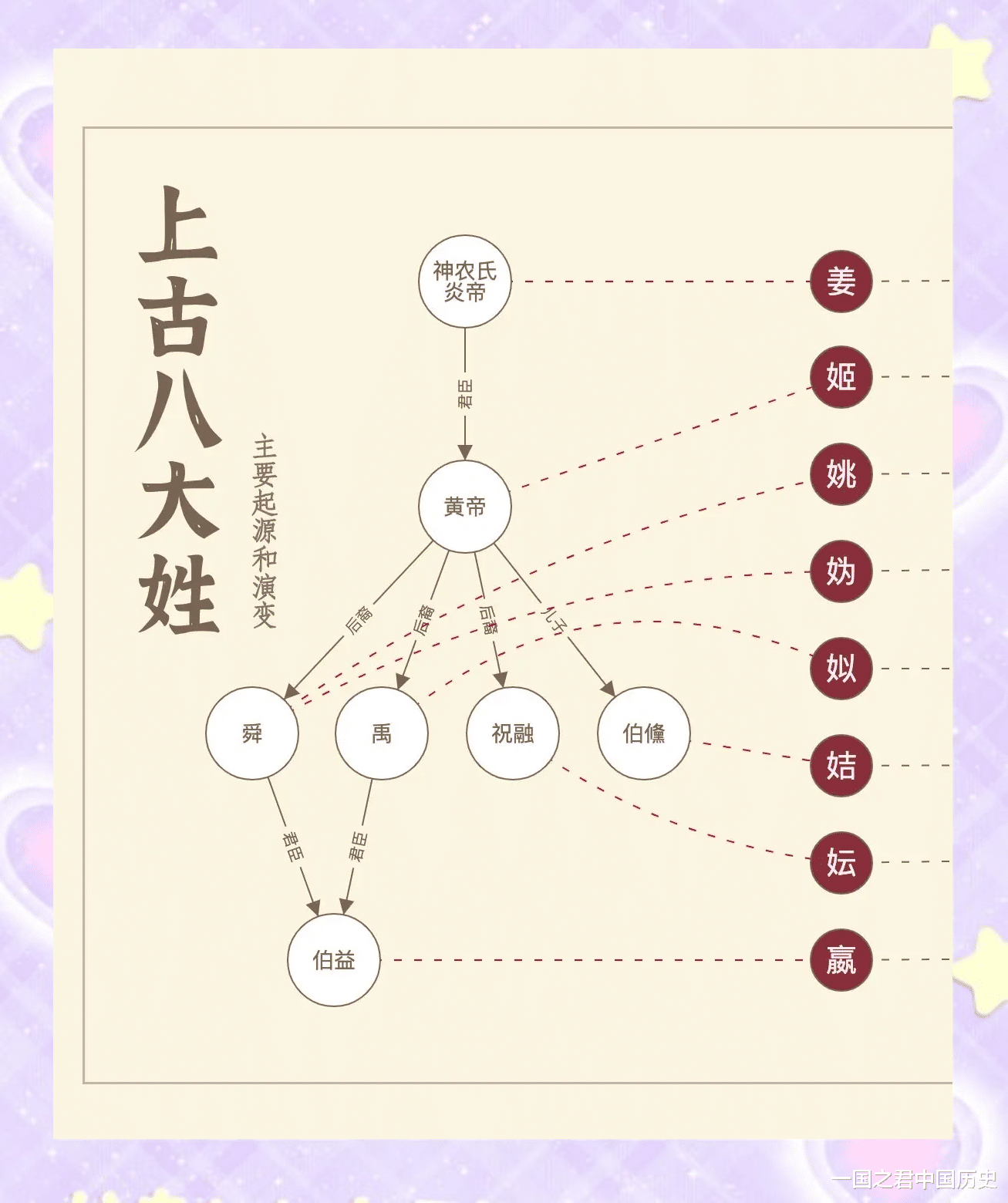 上古八大姓姬、姜、姒、嬴、妘、妫、姚、姞,无一例外都有个女字旁或者女字在其中,这是母系氏族社会的影响。