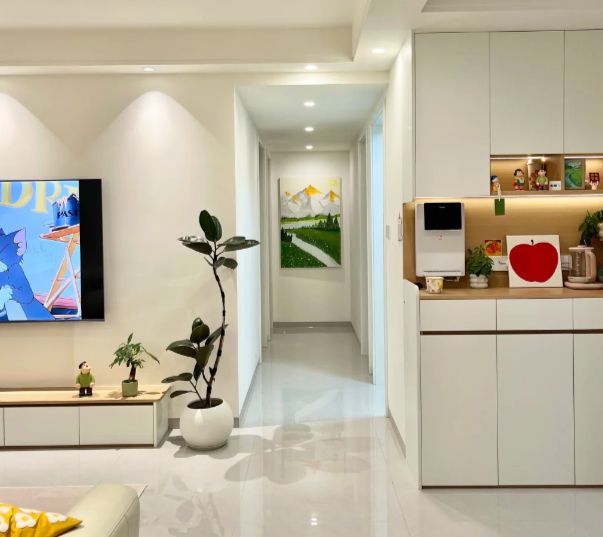 第一个是关于光的故事。想想午后三点的客厅,直射的阳光有时显得生硬。你可以试试一层透光的米白色亚麻窗帘,它不像厚重帘幕那样彻底拒绝光线,而是像一个温柔的滤镜,把锐利的光线筛成均匀柔和的漫射光,让整个房间仿佛蒙上一层柔和的蜜色。傍晚时分,关掉主灯,在沙发角落点一盏暖光的落地灯,光晕刚好覆盖你蜷缩阅读的范围,这种局部的、包裹性的光,比一盏亮堂的顶灯更能营造安稳宁静的氛围。要注意的是,灯光并非越亮越好,分散的多点光源,往往比一个孤零零的明亮主灯更有层次和温度。