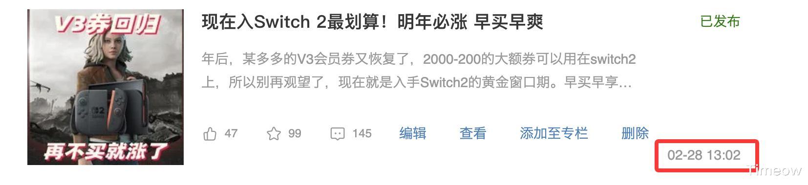 除此之外,想玩Switch2但还没买的朋友也请抓紧了,我前段时间就写过文章分析过,“Switch2要赶紧买,因为会涨价”。