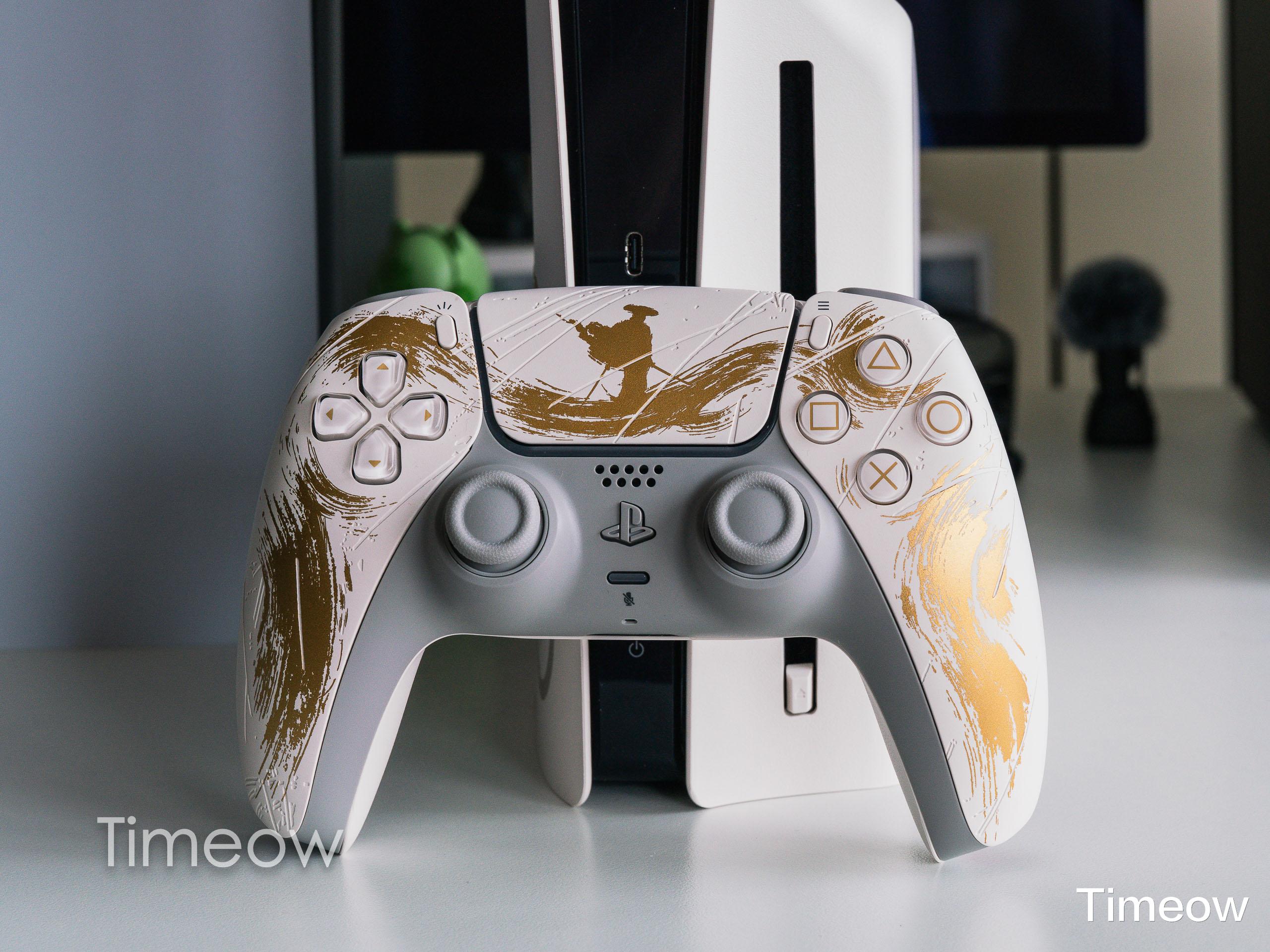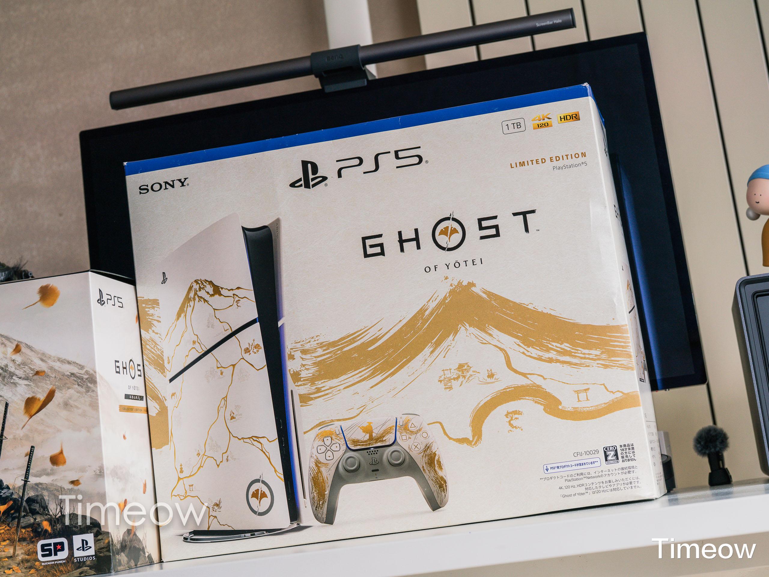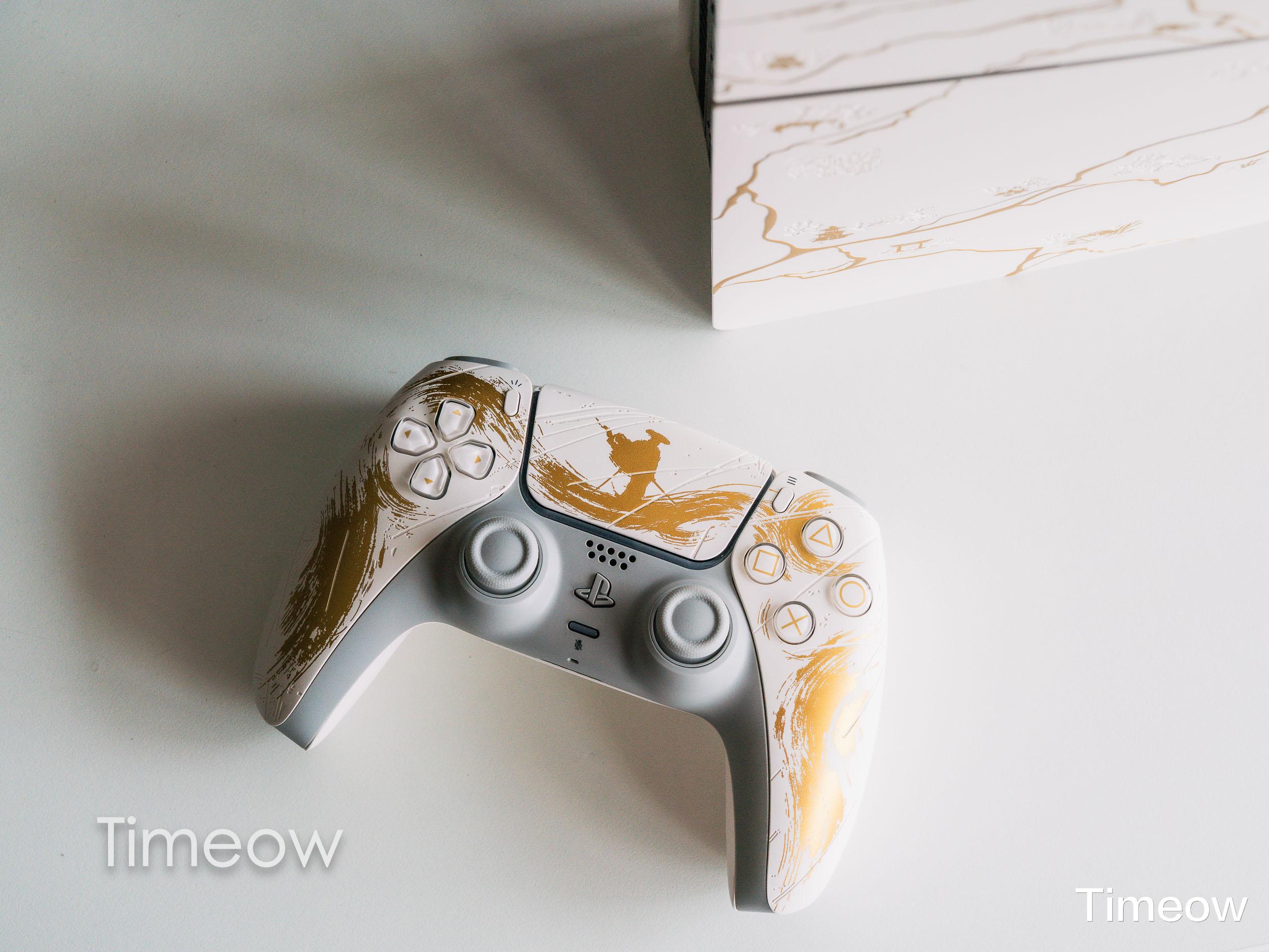 乳白色机身配羊蹄山的金色轮廓压纹涂装,手柄也是同色系同风格,光是外观就让人挪不开眼。再加上限定版自带《羊蹄山之魂》兑换码,可以让我的光盘退休了。