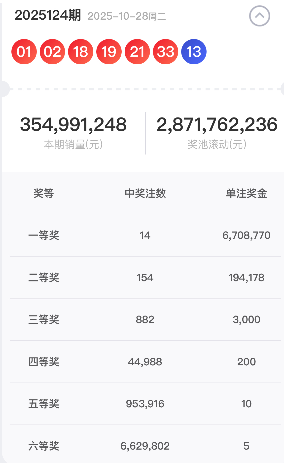 中国福利彩票双色球游戏②⓪②⑤124期开奖信息