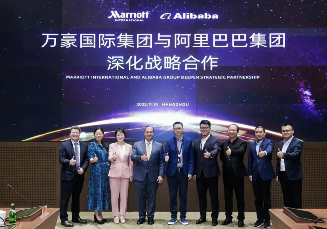 11月10日,阿里巴巴集团与万豪国际集团宣布达成AI战略合作,双方将在中国市场围绕云基础设施、AI应用创新等领域深度合作。阿里巴巴集团CEO吴泳铭、万豪国际集团总裁兼CEO柯诺安双双出席。