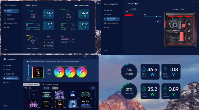 通过水冷自带软件可以轻松控制灯效和屏幕的主题,十分省心。