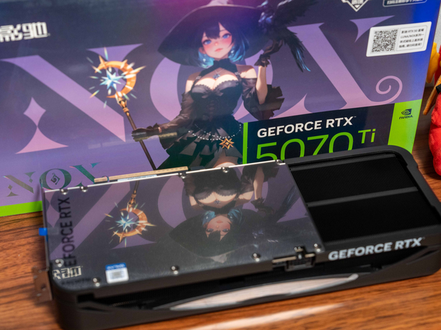 显卡正面设有贯穿式星环ARGB灯带,顶部配备穹顶灯,侧面搭载千层镜式LOGO灯,并支持主板神光同步;背面镜面背板可反射机箱内部光效,进一步强化整体视觉氛围。