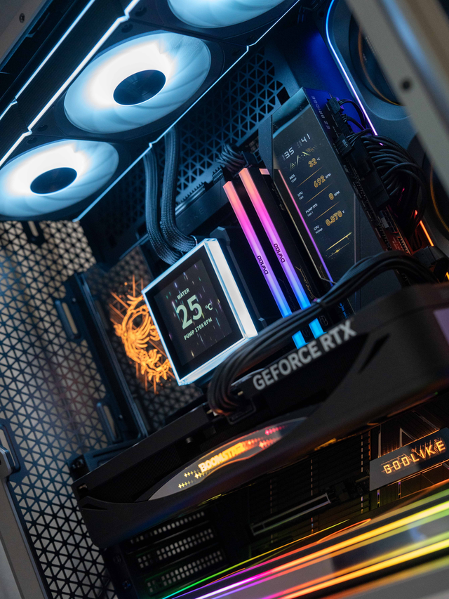 其采用了全隐藏式接口与接线设计,所有线缆均从侧面引出,让主板正面呈现出犹如背插主板般的极致整洁。在这份极简美学之下,是毫不妥协的旗舰规格:24+2+1 相 Duet Rail 供电,单相电流高达 110A,搭配双 8Pin 接口,为任何旗舰处理器提供澎湃稳定的能量源泉。同时,它支持高达 8400+ MT/s 的 DDR5 内存,并集成可实时监控硬件状态的 3.99 英寸 LCD 屏与一键显卡快拆按钮,将便捷体验融入每一个细节。