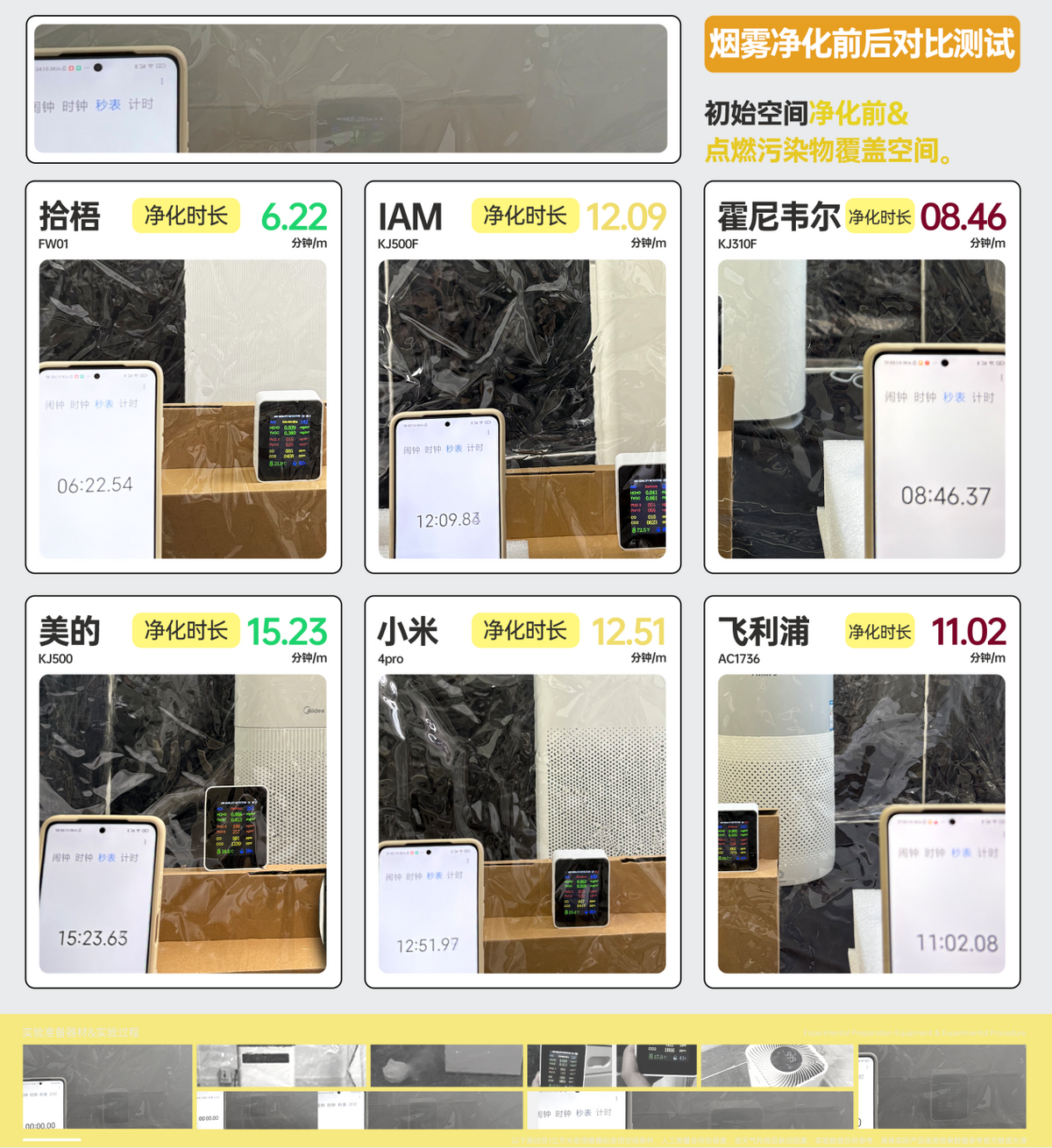 测试结果显示,烟霾净化效率为99.96%,15分钟内可见明显效果,提升空气清新度