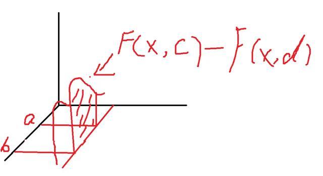 现在我们想要求这个横截面的面积,实质上就是在被积函数f(3,y)在c点到d点对y求定积分。