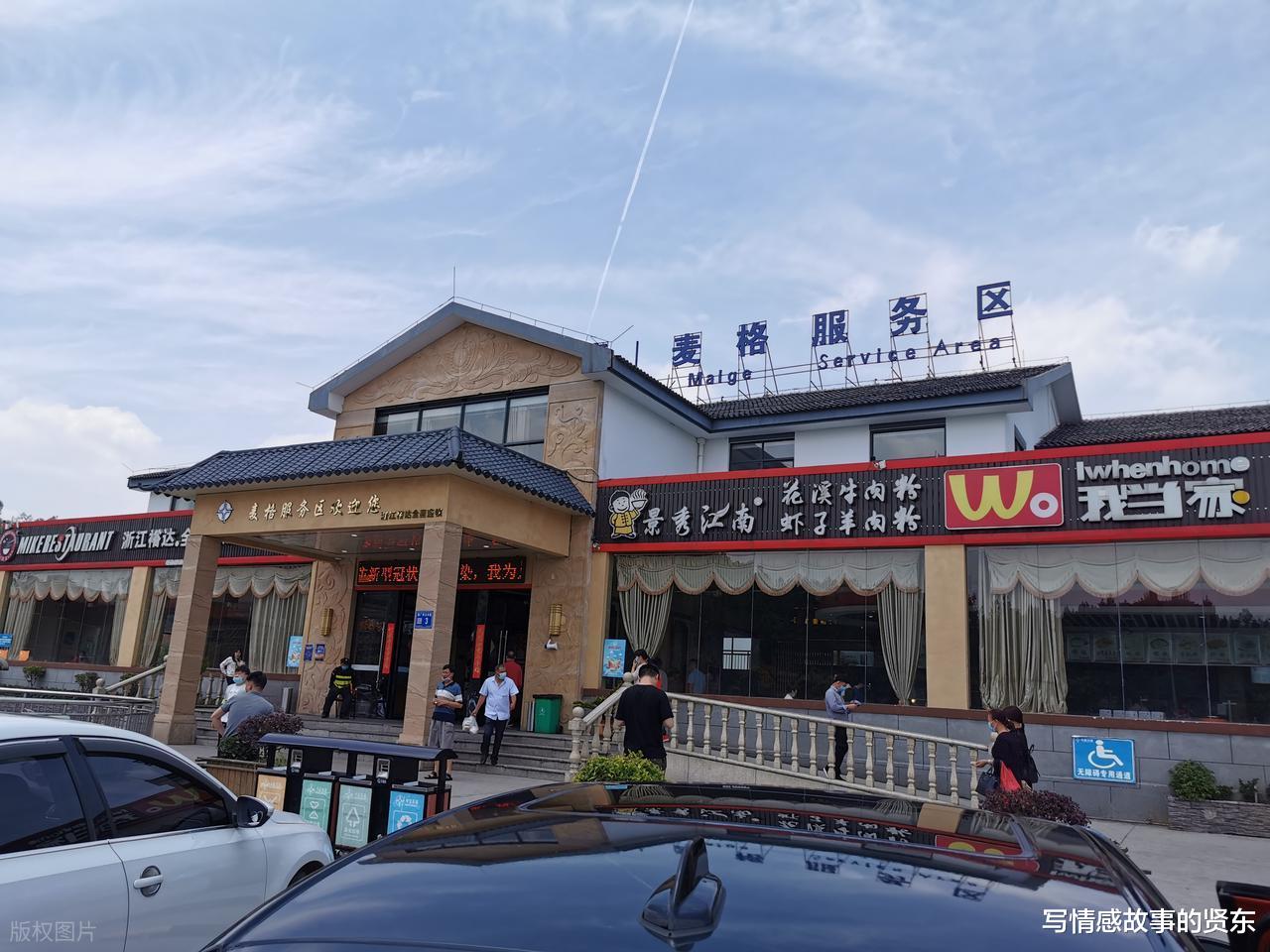 我摇摇头:“不知道啊,我去看看。”说着就下了车,往服务区里面走。