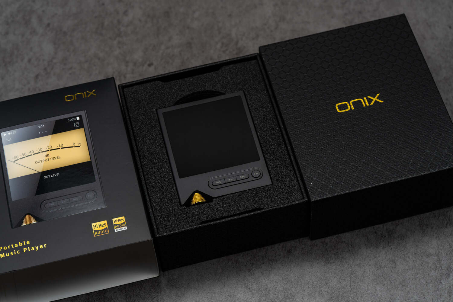 外观特征:ONIX便携播放器家族化外观风格,黑金配色高级感十足,整体较为小巧