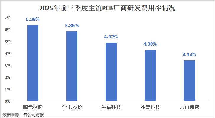 用研发情况来看,2025年前三季度,鹏鼎控股的研发费用为17.13亿元,研发费用率为6.38%,在行业内处于第一梯队。