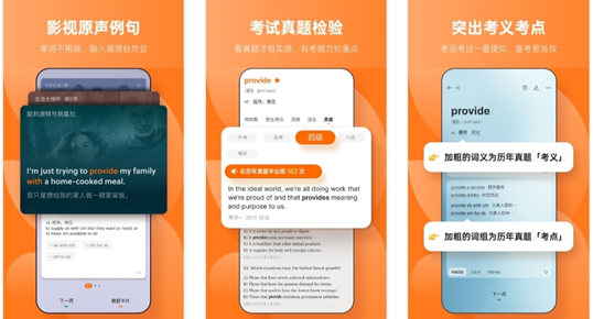 有了它单词再也不用死记硬背!这里有150万条出自英美剧和电影的原声例句,增加我们对例句的印象,让我们沉浸式学习英语。而且她还会根据艾宾浩斯记忆遗忘曲线,为我们制定专属的复习计划,不会让我们好不容易记下的单词,轻易的忘记。这里有丰富的词书不管是中小学英语,考研英语或雅思,都可以结合自身进行选择。快来我们一起轻松的学习单词吧!