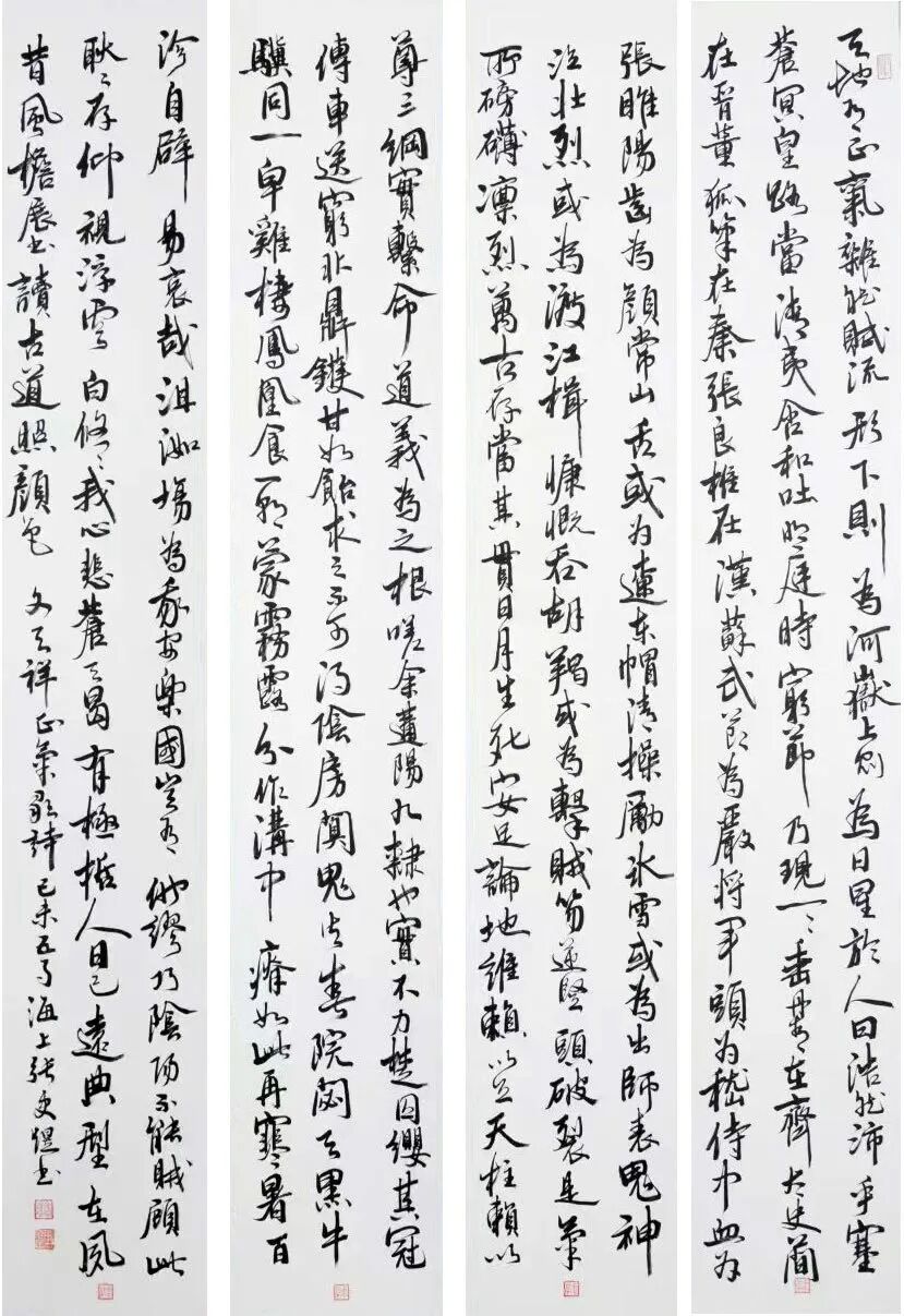 书法的历史文脉绵延不绝,而其未来的生机,则正系于当下每一位书家的耕耘与努力。诚如当年欧阳询所言:“澄神静虑,端己正容,秉笔思生,临池志逸。”今观张更煜先生的书法。我想,这也就是对他本人书法精神最恰切的诠释了。