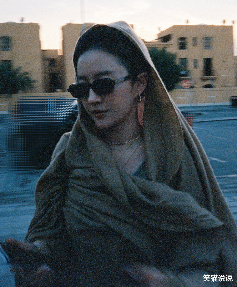 刘亦菲还晒出了她在阿布扎比外出时披着头巾外出欣赏风景的自拍照,照片中的她素颜披着驼色的头巾,戴着墨镜,她拿着手机在自拍,看起来很惬意,粉丝们评价表示这两张照片看起来很有神性,也很有异域风情。