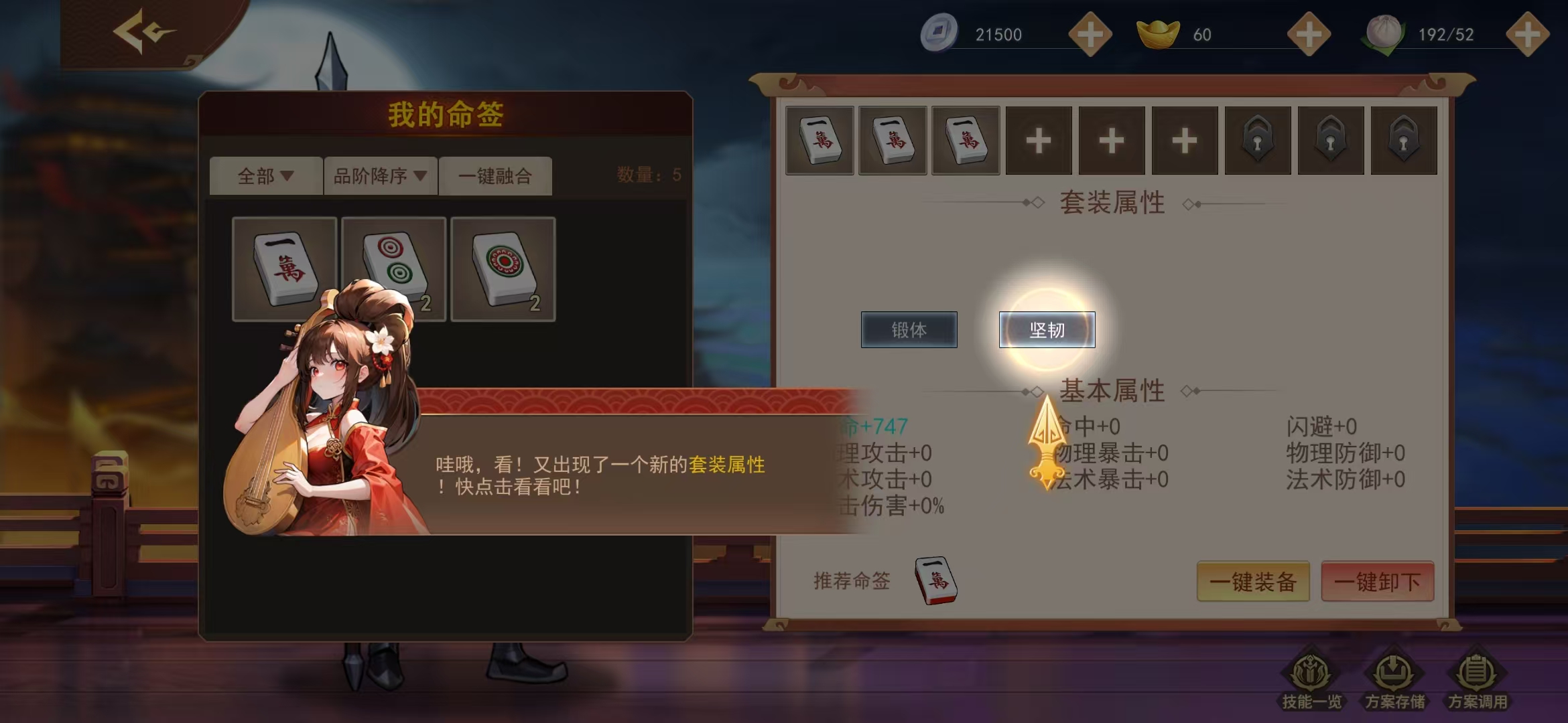 这还没完,上文说到的这些系统提供的不是固定不变的技能加成,我们可以自由改变技能配置,这正是《掌中三国》(tap版)真正硬核的地方。比如命签系统,从整套麻将牌中任选出十几张牌组成,通过调整麻将牌的不同组合方式,会触发不同的技能和buff;再比如坐骑系统,我们先从猎苑中得到初始坐骑,然后通过不同技能坐骑繁衍进行技能融合,最终得到我们想要的6技能坐骑。其他系统虽然稍微简单一点,但也都是可调控的,因此游戏的技能组合不是简单几种搭配,是很多技能的综合搭配,从这一点讲,烧脑度是大于主流配将slg游戏的。