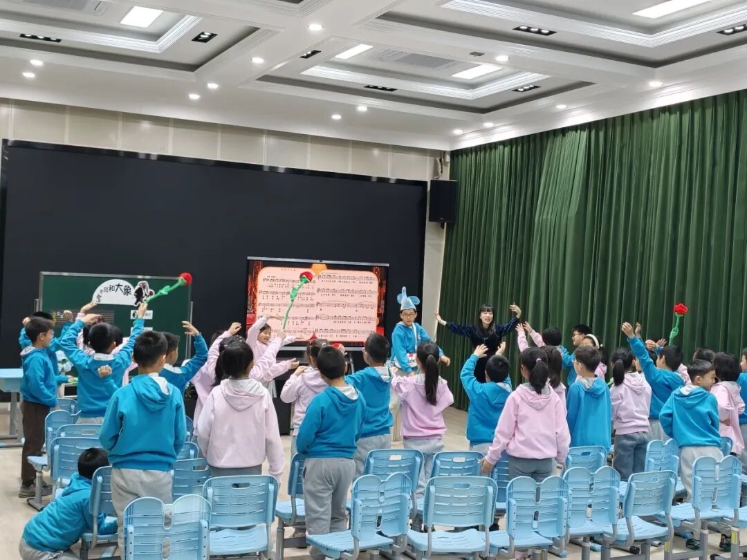 本课以“舞台风采”为主题,采用“创排式学习”模式,让学生在“动物世界歌舞剧院”情境中通过演唱、表演、编创体验音乐与戏剧、美术的融合。课堂贯彻“教学评一体”,突出合作与实践,在艺术浸润中启迪价值思考,展现美育课堂的活力与深度。