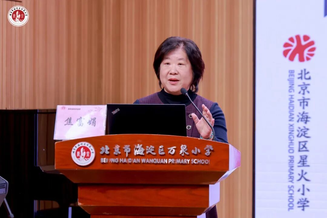 随后,北京市海淀区万泉小学教育集团联盟校海淀区星火小学校长焦富娟以《承转河文脉,育书院少年》为题,分享了“转河书院”课程十年的探索,阐述了十年积淀,让转河文化扎根学校的过程,以及以五维课程让素养全面发展的育人路径。