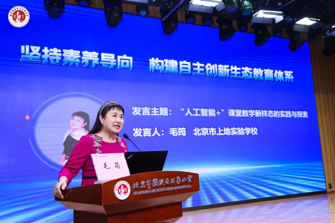 区域联研校北京市上地实验学校毛筠校长分享了“人工智能+课堂教学”的新样态,阐述了人机协同如何促进教学结构变革与精准评价的研究成果。学校持续推进教师数字素养培训工作,通过系统化的课程安排,帮助教师掌握现代AI应用技术,更新教学理念,提升课堂教学质量和效果。