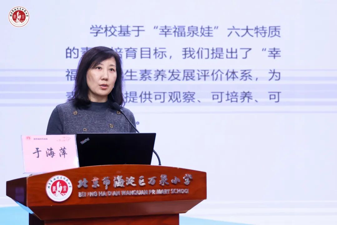 德育副校长于海萍以“幸福力”评价为主题,介绍了学校建立的以“幸福感受力、创造力、分享力”为三维框架的学生素养发展评价体系。