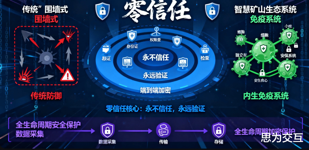 传统的“围墙式”防御思想已经过时。智慧矿山生态系统需要建立一个内生的“免疫系统”,而“零信任架构”(Zero Trust Architecture)正是这一理念的最佳实践 。