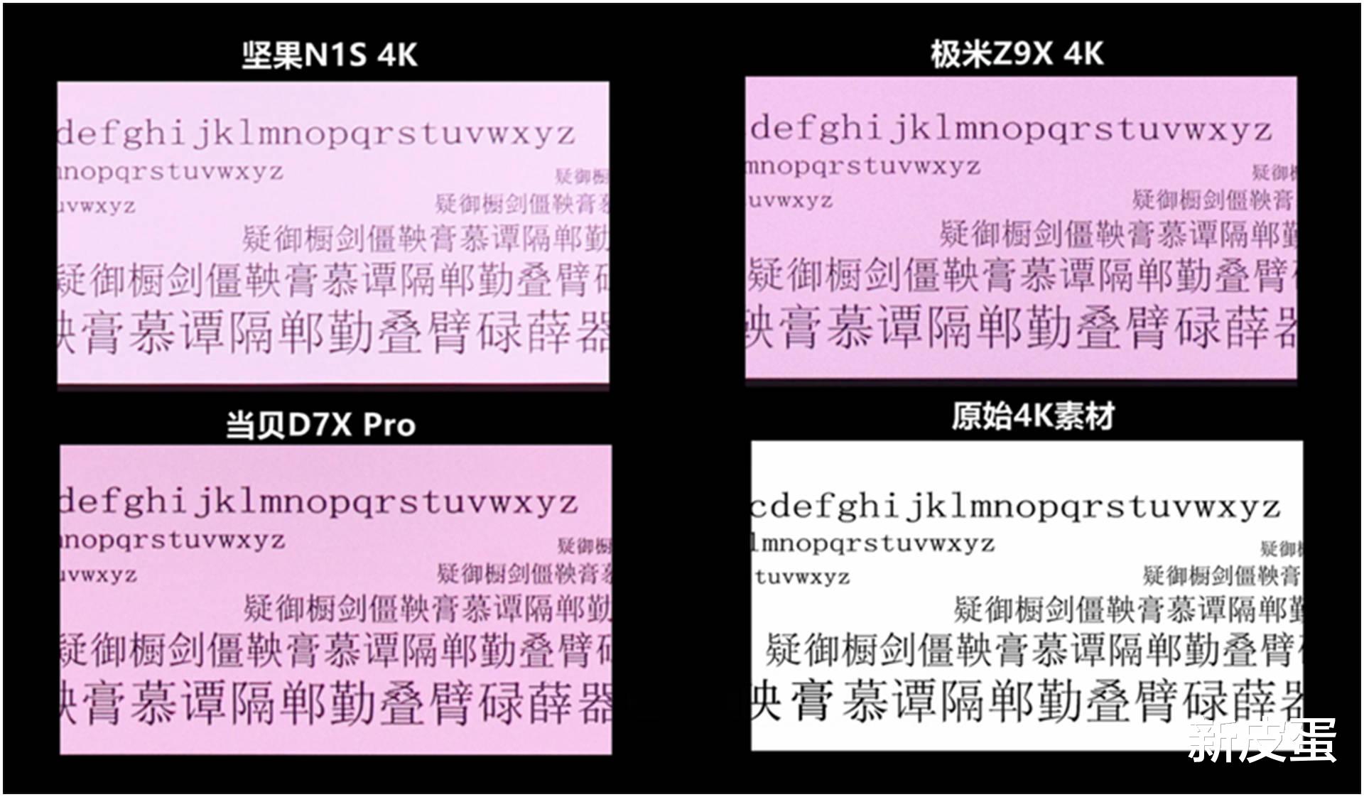 核心结论:0.39DMD芯片的对比度表现远超预期——当贝D7X Pro与极米Z9X的静态对比度达到五千元级投影平均水平,较坚果N1S的0.47DMD芯片实现“质的飞跃”。