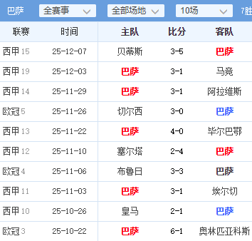 · 客场表现: 客场状态不佳,近4个客场仅1胜;但历史上客战西班牙球队战绩不错(6次客场4胜1平)