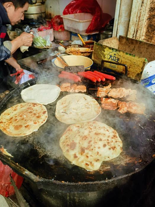 去排队吃了一次真的好香,鸡蛋灌饼外皮酥脆,内里软嫩,刷秘制甜辣酱,加根烤肠,是本地人爱吃的早餐味道。