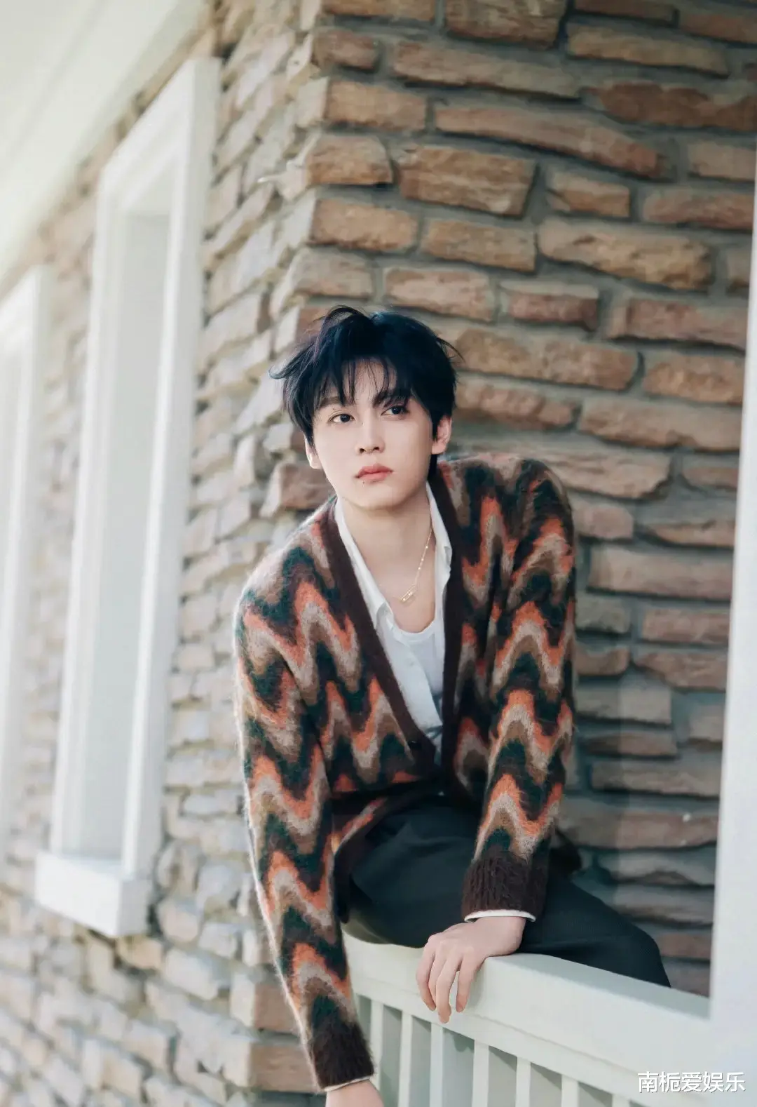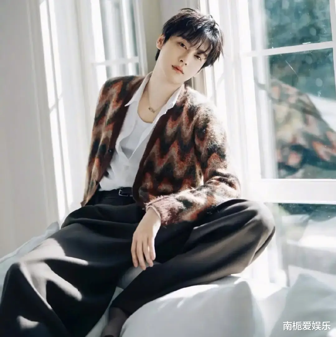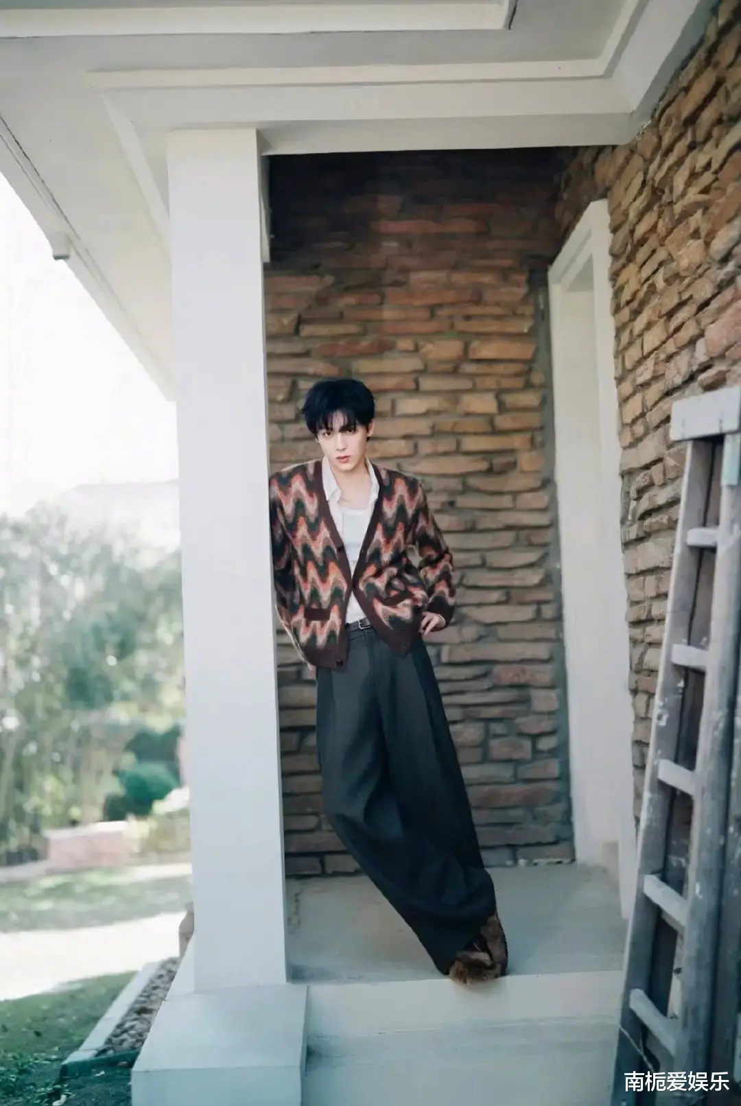这组大片的主角,其实是那件看起来就软乎乎的拼色锯齿轮纹针织开衫。田栩宁内搭简约白衬衫,下身穿了条阔腿西裤,整个人看起来清爽又居家。画面里的色调全是让人感到舒服的浅棕、米白,像是把冬日午后最温柔的阳光穿在了身上。最绝的是光影的运用,那种暖调的柔光打在身上,完全没有生硬的打光痕迹,媒体都夸他是“用神态代替打灯的氛围感大师”,让人感觉就像邻家大哥哥随手拍的生活照,亲切感拉满。