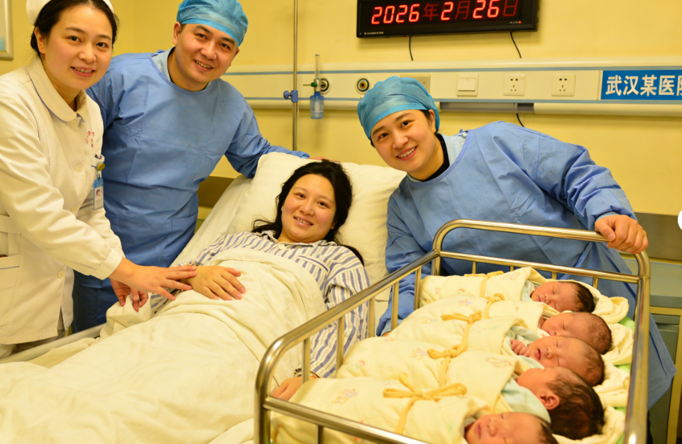 当凌晨三点的产房里,接连响起五声微弱却清亮的啼哭,