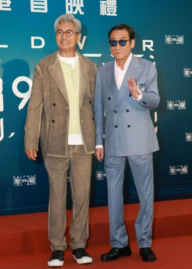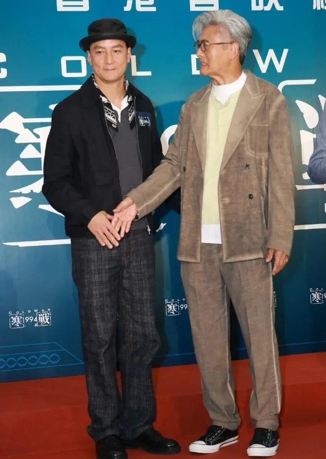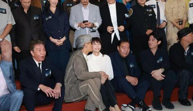 全体演员大合照时,周润发、郭富城、梁家辉主动让出前排核心位置予陈以文、郑则仕与白只。吴彦祖与刘俊谦互相谦让中间站位,二人互动拥抱,气氛轻松。