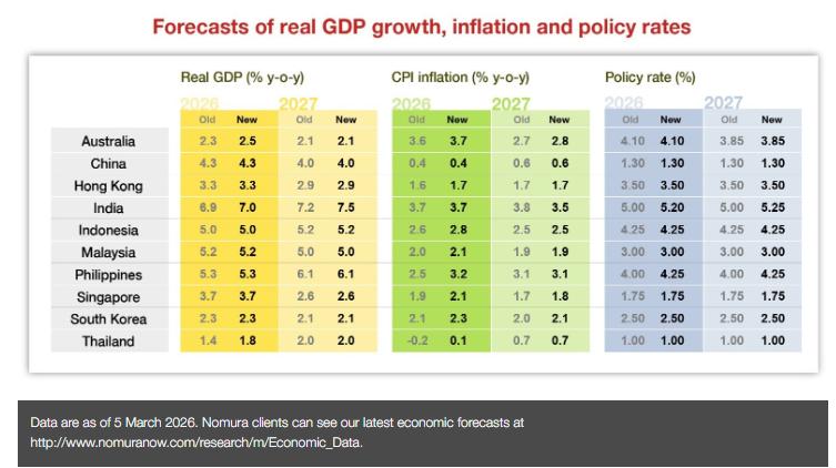 此外,当前较低的通胀基数也提供了一定的缓冲。我们预计,像菲律宾(油价每上涨10%,通胀传导效应上升0.5个百分点)和韩国(0.3个百分点)这样实行市场化燃油价格的国家,通胀传导效应会更高。如果油价持续上涨,并因运输/货运成本和化肥价格上涨而更广泛地波及食品和其他大宗商品,我们预计通胀风险将构成更大的威胁。