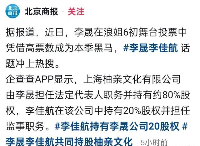 李晟是法定代表人,持股80%,是大老板;李佳航占20%,当监事。