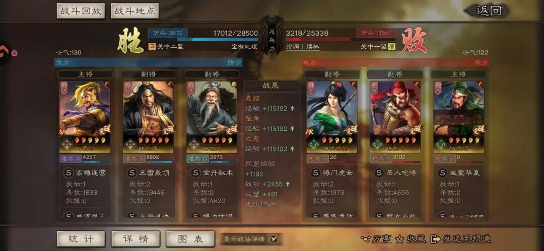 增强了部分武将,指定武将携带治战法时会获得增强,有的效果相当不错。建议策划可以把治战法携带增强的武将范围扩大到5人,各种平民冷门的武将可以都放进去,携带治战法的武将着直接全兵种S,这样这个剧本可以说一下,百花齐放,可玩性从不太高一下变为可玩性非常高。氪金大佬可以继续四幻神,平民玩家可以搭配点冷门新花样。