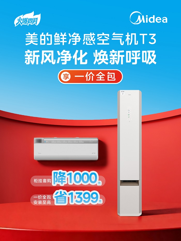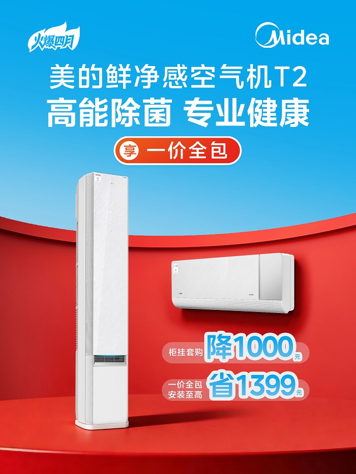 产品好,价格省,安装快,服务佳!美的空调春装季大促已经全面打响,从4月1日至5月5日,这场福利狂欢正在火热进行中!有换新或装修需求的消费者,千万别错过这一波年度难得的政策红利!赶紧前往离您最近的美的空调门店,尽早享受清凉、健康、舒适的品质空气生活!现在不买,真的要等一年!