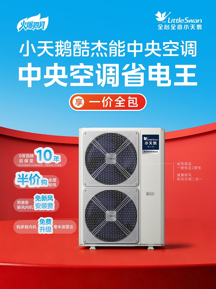 在风管机赛道,美的双出风风管机以其行业首创的"Y"型双向气流脱颖而出,被誉为"万元以内不踩雷的风管机",实现冷暖双舒适体验,并搭载分相增焓技术保证强热不衰减,配合免费升级的智能触屏线控,科技感十足!同时,美的乐享4代风管机以超一级能效和全直流变频技术为核心优势,堪称"行业能效标杆",适合注重节能与舒适体验的家庭。此外,小天鹅酷杰能中央空调以"省电王"著称,一晚低至2度电,目前购买还可享半价新风等专属福利,是高性价比的节能之选!